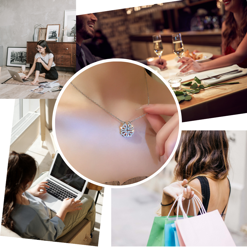 Collar de cuatro hojas en forma de corazón - Dos formas de llevarla - Ozerty